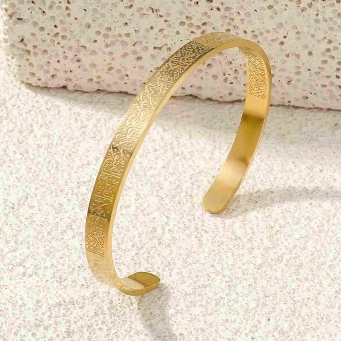 احمل آية الكرسي معك أينما ذهبت، منقوشة بدقة على سوار أنيق من النحاس يمنحك طاقة روحانية وشعور بالسكينة في كل لحظة.